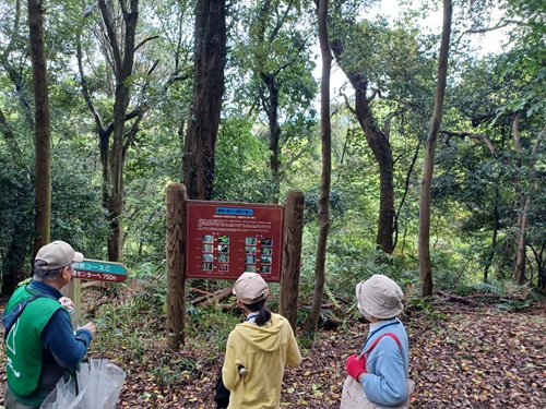 立田山では森林インストラクターの方と一緒に散策を楽しみました。インストラクター